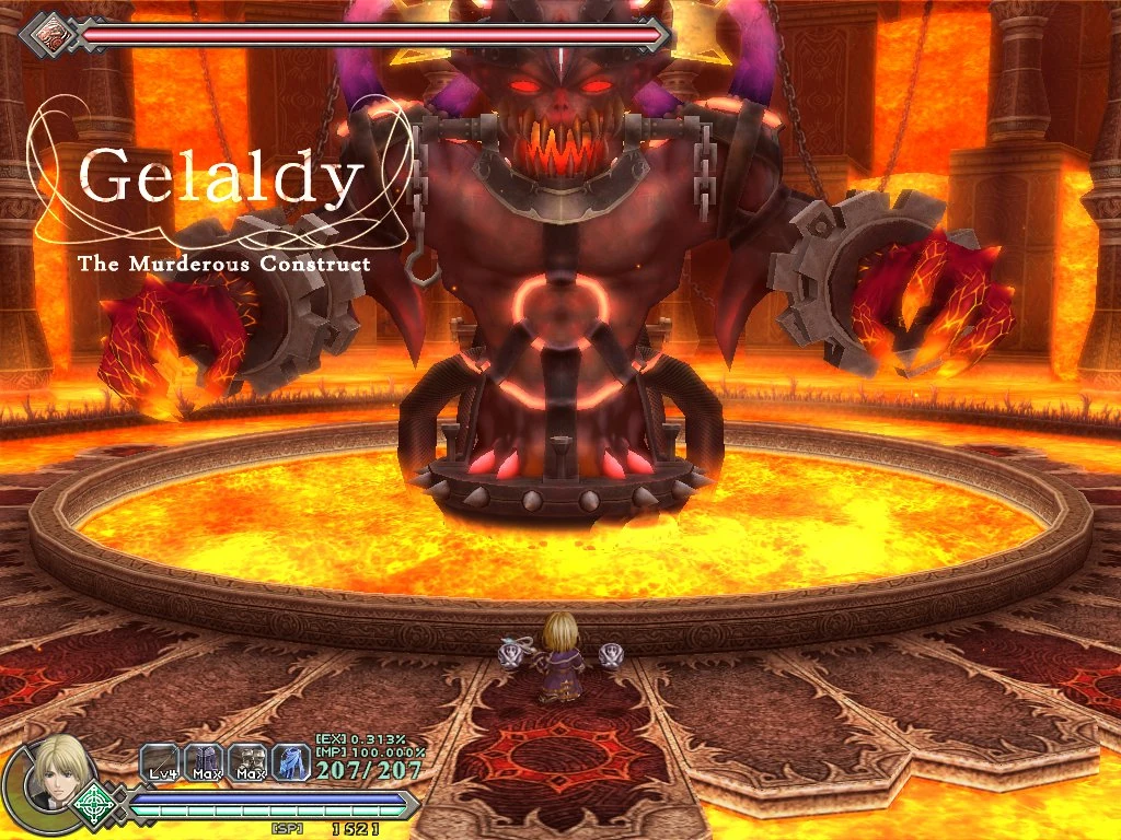 A bizarre, gargantuan construct that rules over the Guilty Fire tier. Its solid head and tough skin are designed to impart maximum torment on foes. It's been shackled to prevent it from going on a mad rampage.