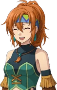 Karna (カーナ) is a cheerful, honest young girl who lives in Comodo, the treetop village that has survived in the forest of Celceta. She is the daughter of the village chief Asad.