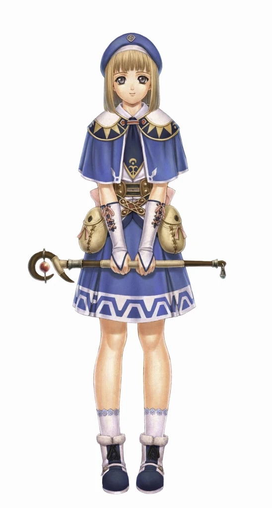 Miuscha (ミュシャ?) is an apprentice sorceress with a hatred for combat but a talent for healing from Ys Origin. As a childhood friend and admirer of Hugo Fact, her feelings for him drove her to join the search party.
