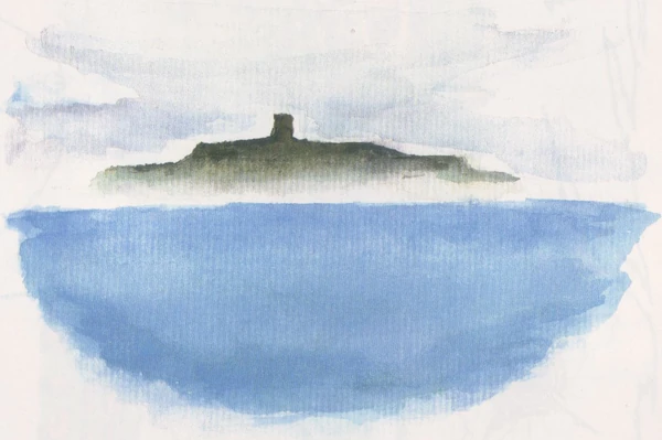 When he opened the window, the dazzling light of morning shone into his room. He could see the sea clearly from his window and, on the coast, there was a group of fishing boats returning from their morning catch. There was also a larger cargo ship headed out to the open sea. Adol began scanning the horizon and, eventually, his gaze stopped when he was looking north. Something strange came into sight in the north out there on the horizon. It was an island. And in the very center of the island, there was something that looked like some kind of tower.