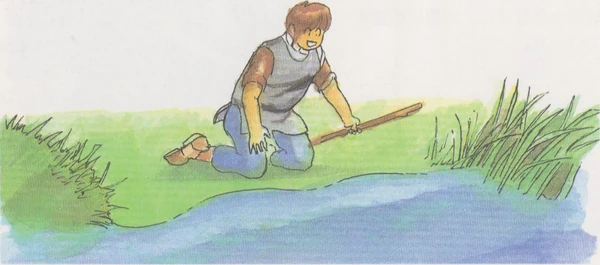 When Adol reached the peak of the summit of the mountain path, the sun was already sinking in the west. As the villagers said, there was a pond of spring water. Adol filled his flask at the edge of the pond and wet his parched throat.