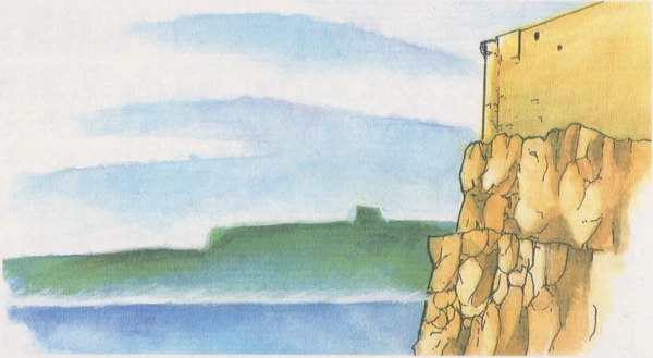 The two started walking towards the storehouse during this quiet afternoon in the harbor. On the horizon, they were able to see, faintly, the mountains of Gllia. Spreading out from the foot of these mountains should have been the town of Promalock, but they were not able to see it clearly.