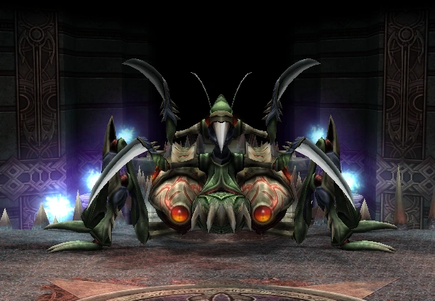 Pictimos - The Grim Mantid A mantis-like demon that rules over the Blighted Blood tier. Its keen eyesight and quick movement enable it to attack with deadly precision. It has an extremely cruel nature, taking great pleasure in hacking its prey to pieces. |