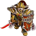 A proud warrior clad in golden armor. Uses its massive shield to fend off frontal attacks but is weak against skills and strikes from behind. |
