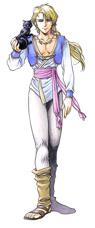 As Adol passed through the gate, he was greeted by a handsome, blond young man with a black cat perched on his shoulder. The young man introduced himself as Rizze, butler to Dorman, the master of the estate. When Adol stated his purpose, Rizze politely bid him to follow and started towards the mansion. Adol followed him through a wide, sprawling garden.