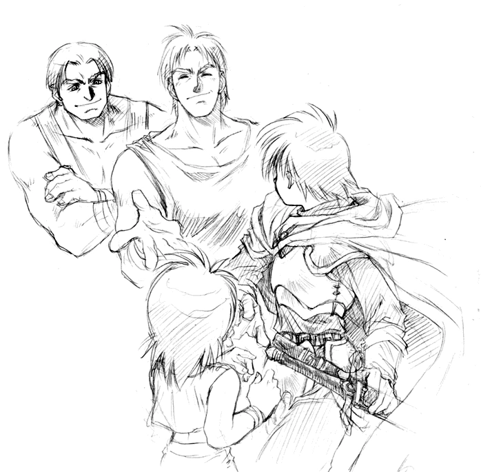 After walking a short distance, Stein, Niena, and Massea were waiting for Adol.